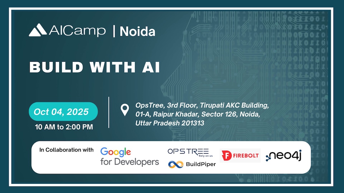 Welcome to the Build with AI in Delhi, in collaboration with Google for Developers and Opstree. Join us for deep dive tech talks on AI, GenAI, LLMs and machine learning, hands-on experiences on code labs, workshops, and networking with speakers and fellow developers.