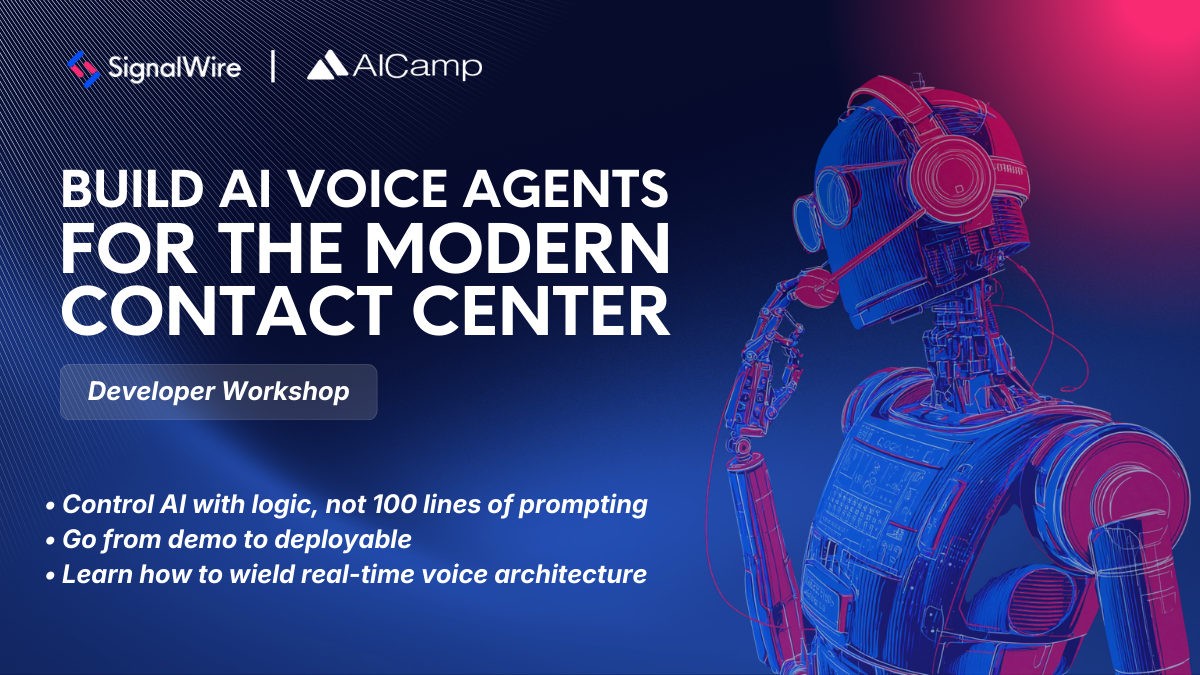 Join SignalWire and AICamp for a hands-on session building AI Voice Agents for Modern Contact Center.