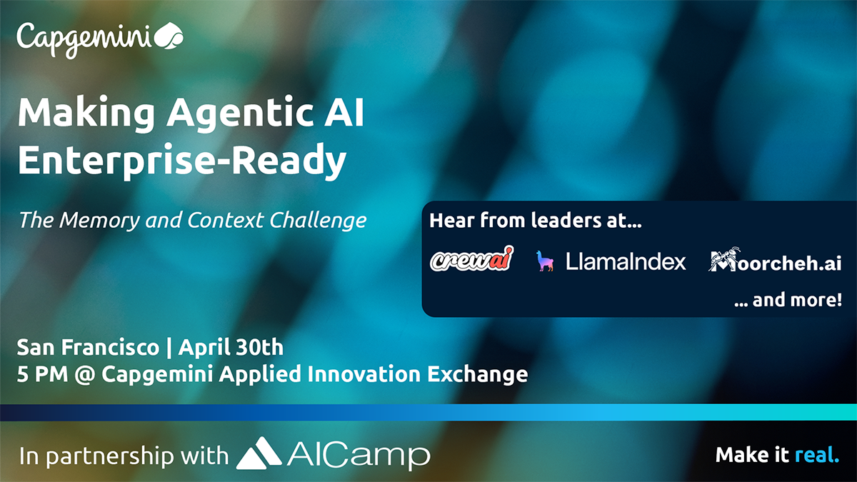 If you are working with or interested in ecosystems around agent frameworks, retrieval and memory systems, and the next generation of AI application stacks, this will be an evening to meet the people building this space and to discuss where enterprise AI is actually heading next.
